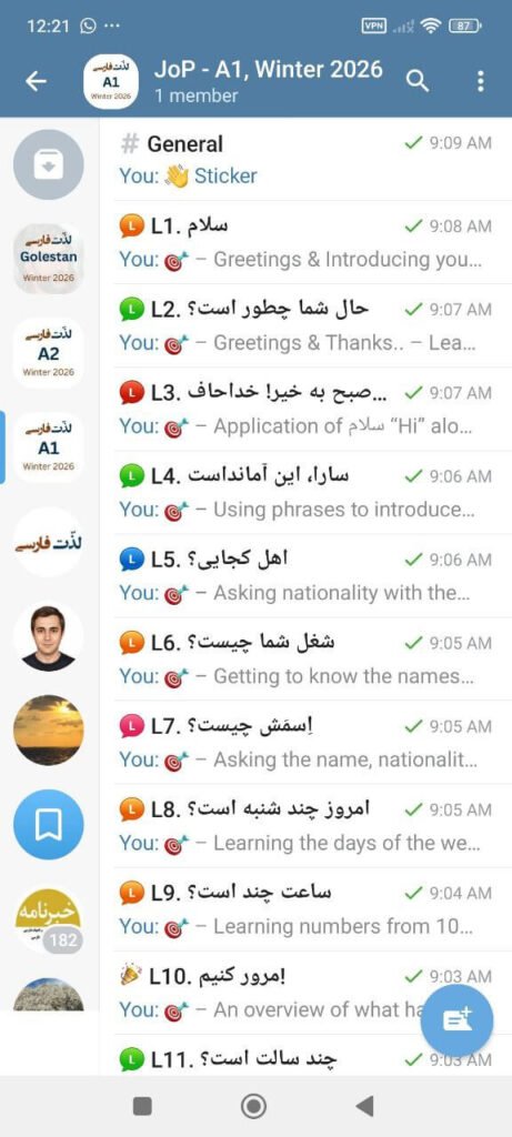 - Our “Let’s Learn Persian Together” (A1 – A2) workshops are perfect for beginner and elementary students who want live practice and expert guidance.