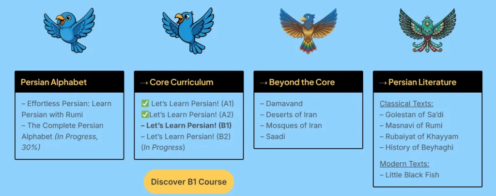- A Structured, Academic Path: Instead of random videos, our courses (like Letâs Learn Persian! A1 & A2) provide a structured, step-by-step curriculum.This is a complete learning experience designed for deep comprehension, vocabulary acquisition, and practical exercisesâa clear path from one level to the next.